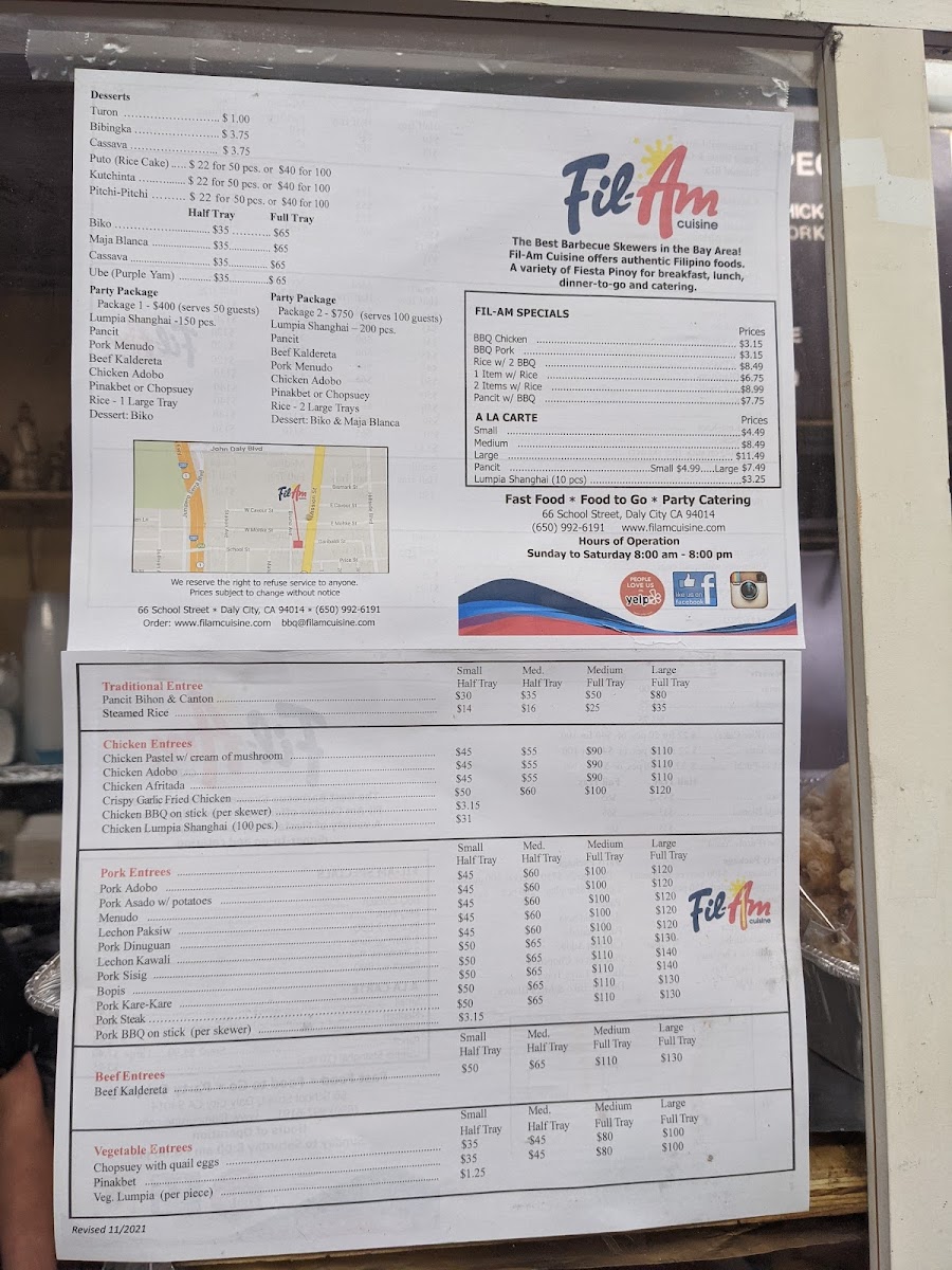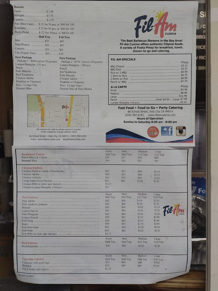 Welcome to Fil-Am Cuisine, a delightful Filipino restaurant nestled in the heart of Daly City, California, at 66 School St. This charming eatery is where authenticity meets flavor, offering a memorable culinary experience that transports patrons straight to the Philippines with every bite.
